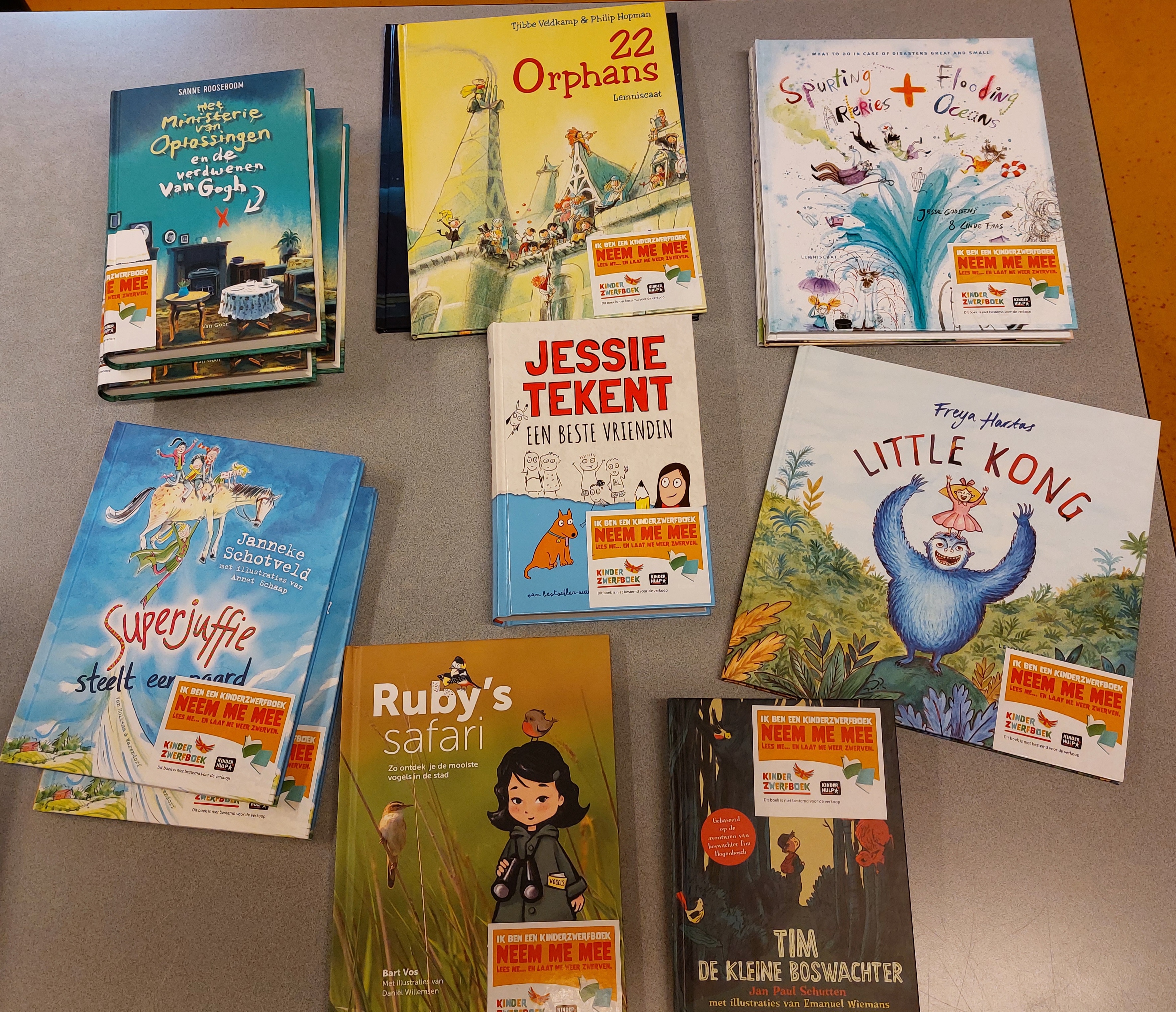 Onze kinderzwerfboekenkast is weer gevuld met nieuwe leuke en interessante kinderboeken, mede door een gift van Nationaal Fonds KinderHulp.